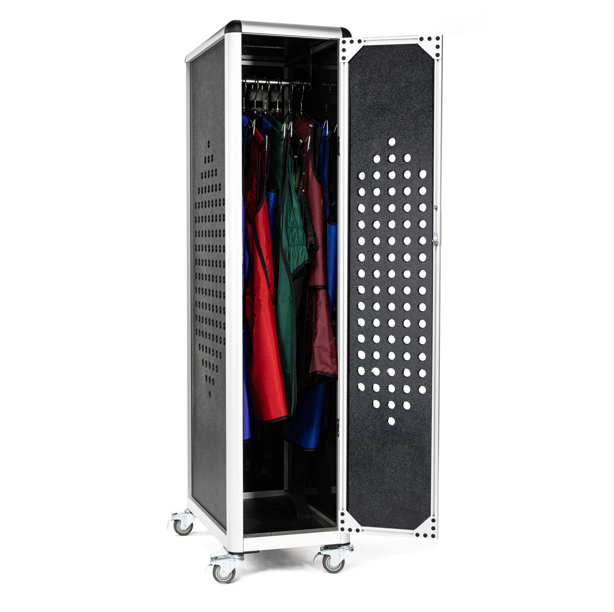 For security, the locker features a digital locking system, allowing departments to control access and protect valuable radiation PPE. Inside, it includes five heavy-duty apron hangers, designed to keep garments hanging properly without creasing, folding, or stressing the core material.