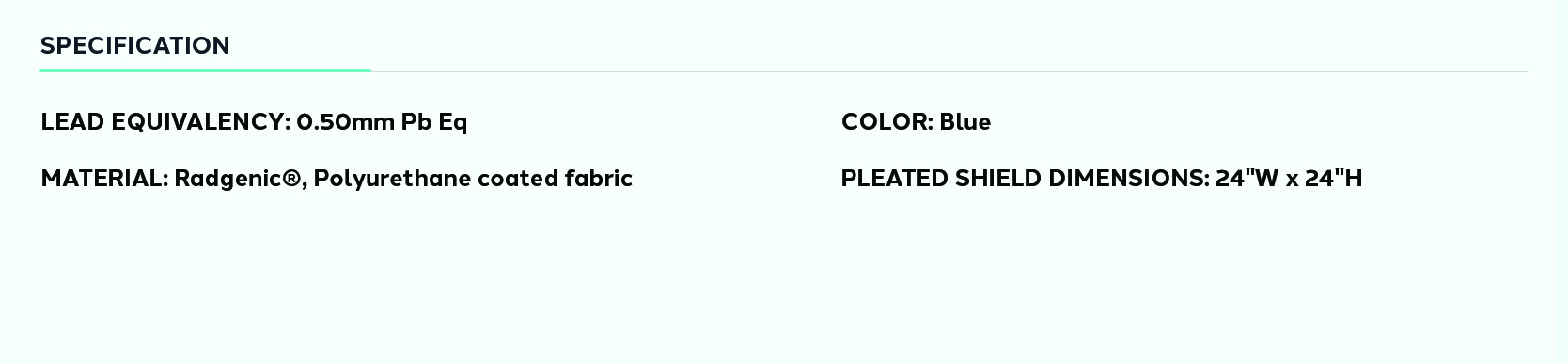 The Radgenic®️ Radiation Quick Mounted Pleated Table Shield protects against scatter radiation while meeting CDC Efficacy guidelines for Category IB disinfection protocols for noncritical medical devices. With overall dimensions of 24 inches wide x 24 inches long, this shield incorporates a 0.50mm Pb Eq lead core to deliver an additional layer of protection.
