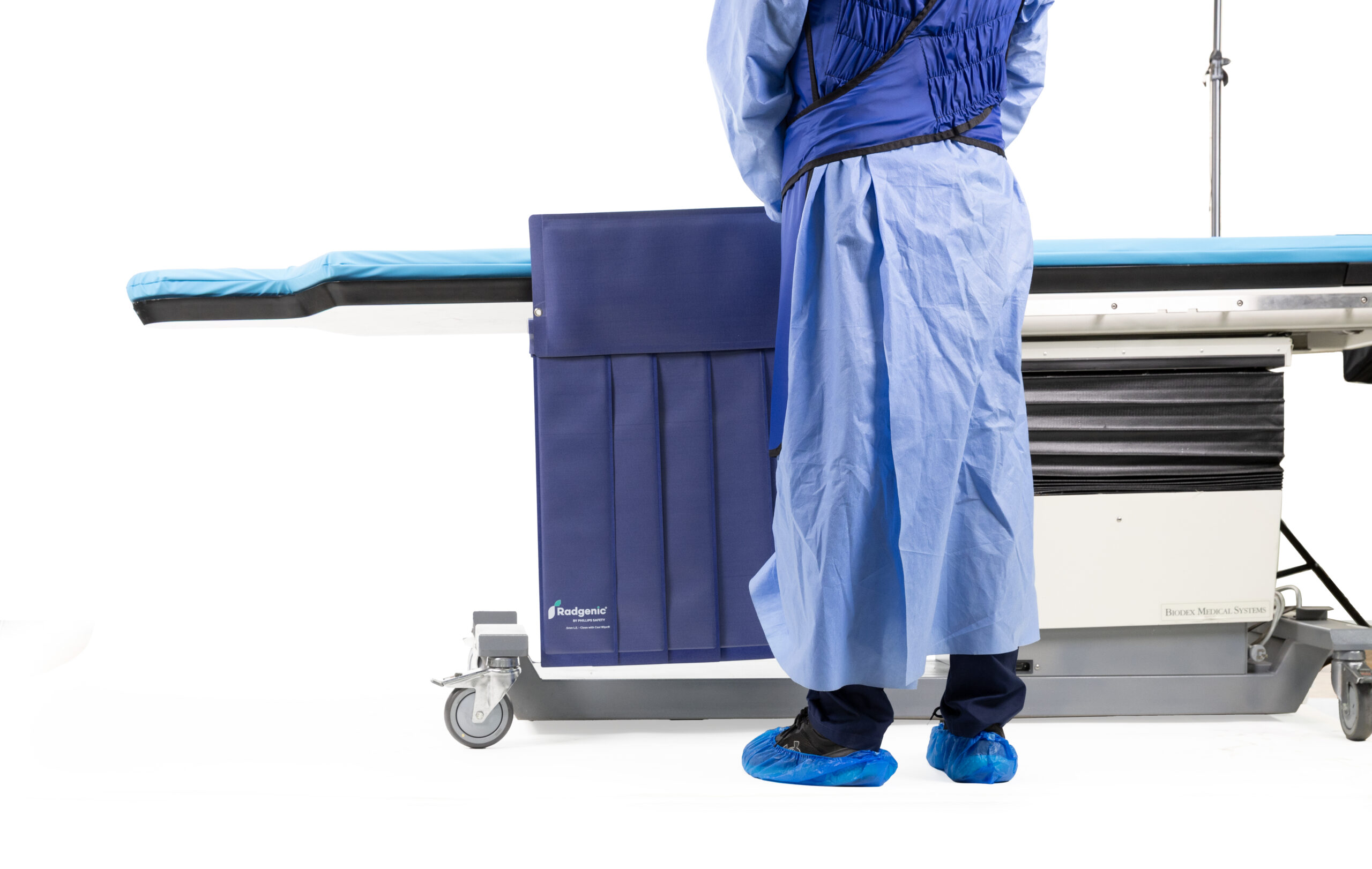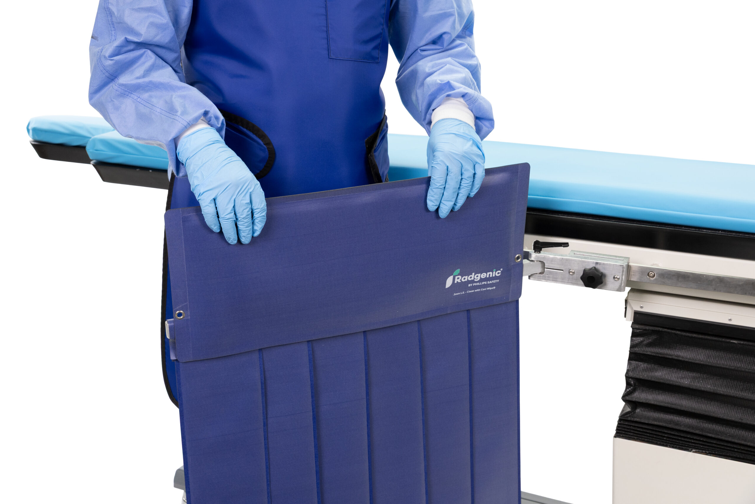 Engineered for modern fluoroscopy and interventional suites, our Phillips Safety exclusive Radgenic®️ Swing Arm Table Shield delivers 0.50 mm Pb equivalent, providing protection exactly where scatter is most intense—above and below the tabletop—without slowing down your workflow.